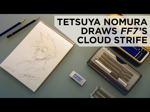Tetsuya Nomura, Principal Character Designer for Final Fantasy VII, sketches us a drawing of Cloud Strife. Check out our full in-depth Final Fantasy VII feature on Polygon! http://bit.ly/2iKCIiP