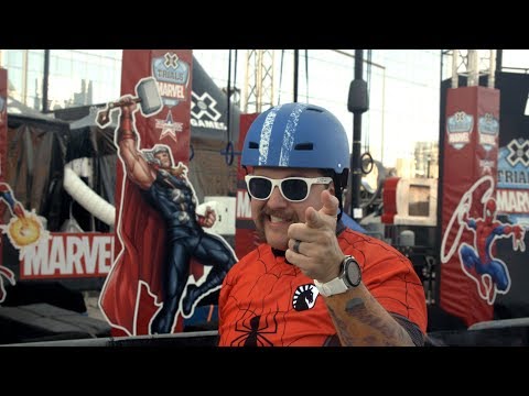 Ryan Penagos, Agent M, goes head-to-head with Marvel superfans at a Marvel themed course at the X Games in Minneapolis, Minnesota.