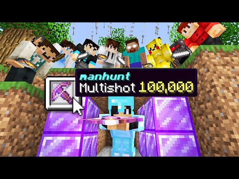 Minecraft Manhunt but i secretly used Multishot 100,000.. ft. 50 Hunters