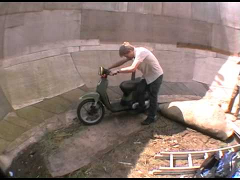 Ian Usher sold his whole life on ebay (everything job house the lot) then set himself a list of 100 goals to complete in 100 weeks one of his goals was to ride a wall of death. Ian did really well to ride the wall even though some people will proberly say "he didn't get very high" since i built this thing the weather has taken its toll and even i struggle to ride it like i used to.