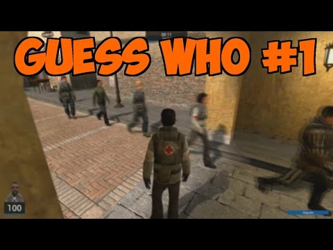 Guess Who est un mode de jeu de Garry's Mod où les joueurs sont scindés en deux équipes : les seekers et les hiders. Le but des seekers est de retrouver et tuer les hiders, qui eux, se cachent parmi tous les bots qui se baladent dans la map, en se faisant passer pour des bots eux-mêmes ! Grâce à leur clic droit, une fois par partie, les hiders ont accès à une capacité les aidant à fuir ou à se sortir de situations dangereuses en cas de besoin.