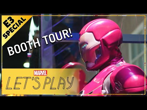 The E3 booth is designed to bring fans into the world of Marvel’s Avengers – everything from the badge to the décor is modeled after the in-game A-Day experience.