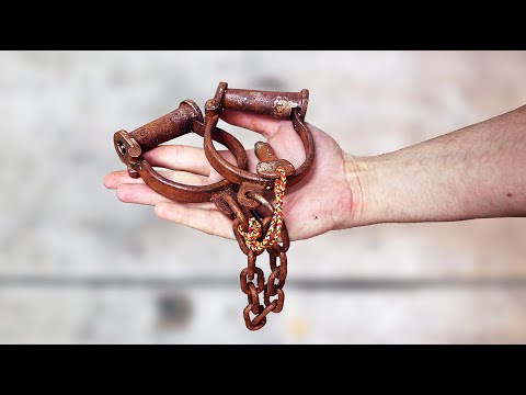 I will restore these rusty antique handcuffs. I bought this interesting pair of handcuffs for restoration. The handcuffs work but they are really rusty. I will remove the rust with electrolysis and the blue the steel to protect it from rust.
