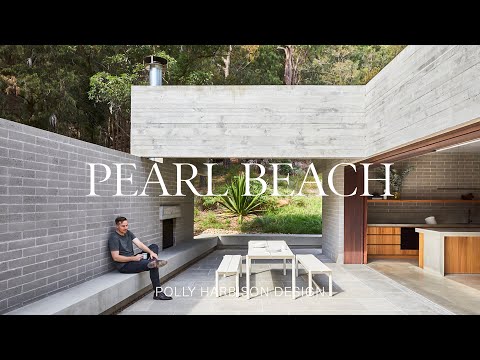 Pearl Beach House by Polly Harbison Design is a concrete sculpture-formed home in the bush. Just one and a half hours north of Sydney, Pearl Beach is a small hamlet within dense coastal bushland. As a home in the bush, it was important that Pearl Beach House remained connected to its landscape while adhering to the fireproof requirements of the ‘Flame Zone’ BAL (Bushfire Attack Level) rating. Set within a clearing, the building emerges from the forest and welcomes the views of lush foliage through its carefully placed windows. Extra care and attention were taken in creating micro-climates within the site, whether that be through the building’s use of space, materials, heating, or balance between exposure and enclosure.